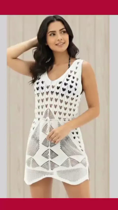 Saída De Praia Liz Tendência Em Tricô Modelo Vestido Decote V Aproveite