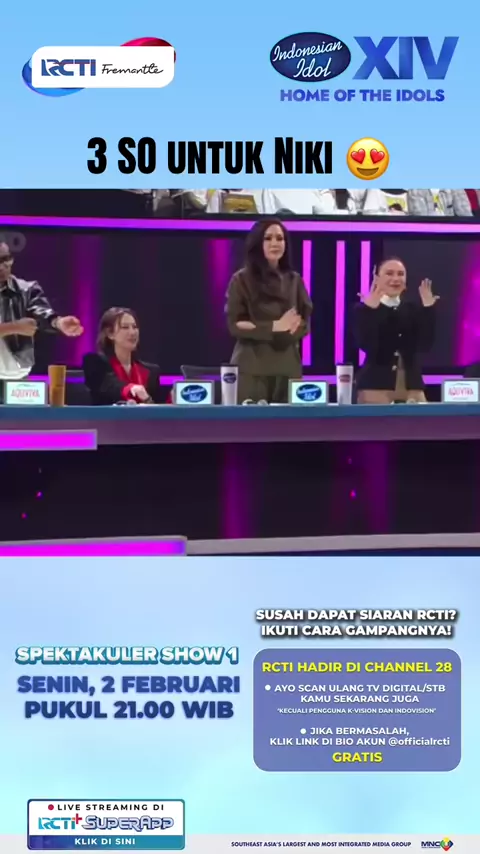 Nikin on fire malam ini 🔥 . Saksikan Indonesian Idol Season XIV setiap Senin LIVE DI RCTI . RCTI Hadir di CHANNEL 28, ikuti cara mudahnya: * Aktifkan LCN lalu scan ulang STB Kamu * Scan otomatis TV Digital Apabila masih bermasalah dengan siaran @officialrcti ditempat kamu? Silahkan cek link berikut ya ⬇️⬇️⬇️ https://bit.ly/LayananSolusiDigital .#IndonesianIdolXIV#IndonesianIdolXIVdiRCTI#HomeOfTheIdols