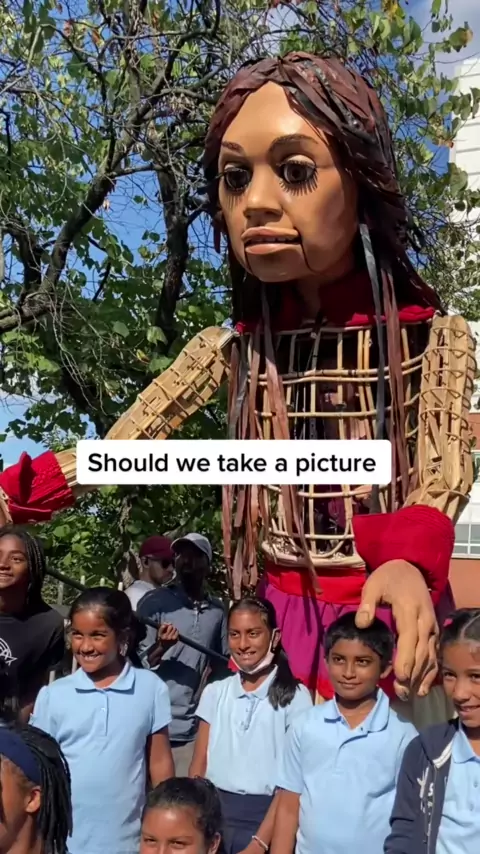 Little Amal fotobombando na Jamaica, Queens. Você já ouviu falar de Little Amal? # littleamal # comedy # giantpuppet # puppetof # # NYC # queens # puppet # giant # littlepeople