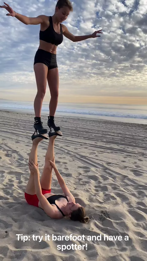 Beach vs. high heels! 😎👠👠 #gymnastics #handstand #acrobatics #acroyoga