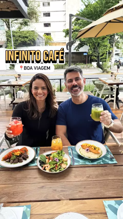 🔸INFINITO CAFÉ ☕️🍹🥗🍲 Nova cafeteria em Boa Viagem, a @infinito.rec, comandada pelo chef @assiscozinha, vai além do cafezinho com bolo, traz um delicioso almoço que vai conquistar seu paladar. 😍😋💚 💵Alguns valores: ▫️Cappuccino: R$16 ▫️Café Filtrado: R$18 ▫️Bolo do Dia: R$19 ▫️Torta infinito: R$31 ▫️Croqueta de Moqueca: R$39 ▫️Salada de Camarão: R$69 ▫️Mignon e espaguete de legumes: R$69 ▫️Salmão com tartar de manga: R$74 📍Rua Tenente João Cícero, 258 - Boa Viagem 🗓️Terça a Domingo #