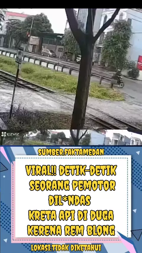 Sebuah video viral memperlihatkan seorang pemotor tert4brak kereta api di perlintasan karena diduga remnya blong, padahal kereta sudah membunyikan klakson panjang, namun kecelakaan tak terhindarkan. #viral #reels #fakta_medan #keretaapi