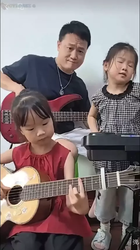 (9).two little girls who are good at playing musical instruments and good at singing have been added to one adult who plays musical instruments and accompanies the music...🎹🎶❤️🎸🎶❤️🎤🎶