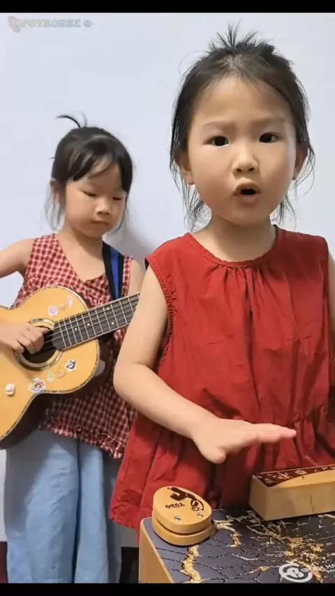 These two beautiful little girls are very good at playing musical instruments..💃🎸🎶❤️💃🎹🎶❤️