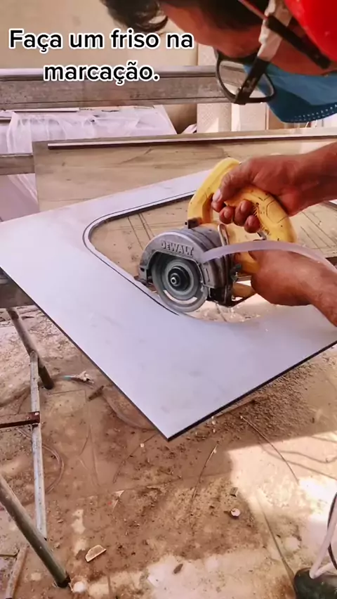 Parte 2, rebaixo no porcelanato pra Cuba de inox. #quizdobrasileirão #kwaiconquistar100k #reforma #Notícia #piadeporcelanato