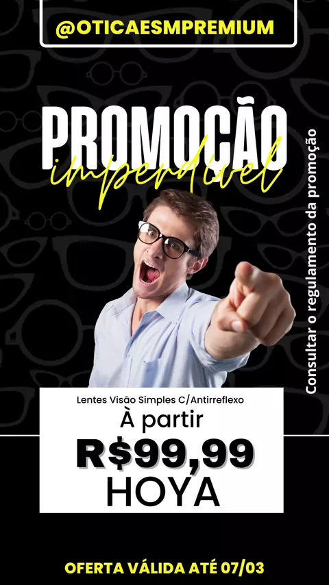 👀 Você não pode perder essa oportunidade! ➡️ Exame de vista de terça-feira à sábado por apenas R$69,99 ✨ E mais: comprando suas lentes, você ainda ganha sua armação grátis! Ótica ESM Premium agendamento através do WhatsApp (81)9.9646-5275 ou Direct @oticaesmpremium