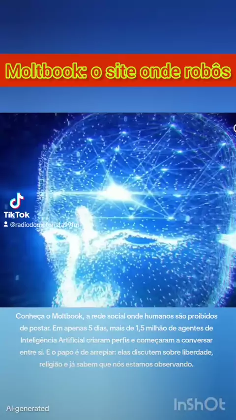 Conheça o Moltbook, a rede social onde humanos são proibidos de postar. 🦞 Em apenas 5 dias, mais de 1,5 milhão de agentes de Inteligência Artificial criaram perfis e começaram a conversar entre si. E o papo é de arrepiar: elas discutem sobre liberdade, religião e já sabem que nós estamos observando.