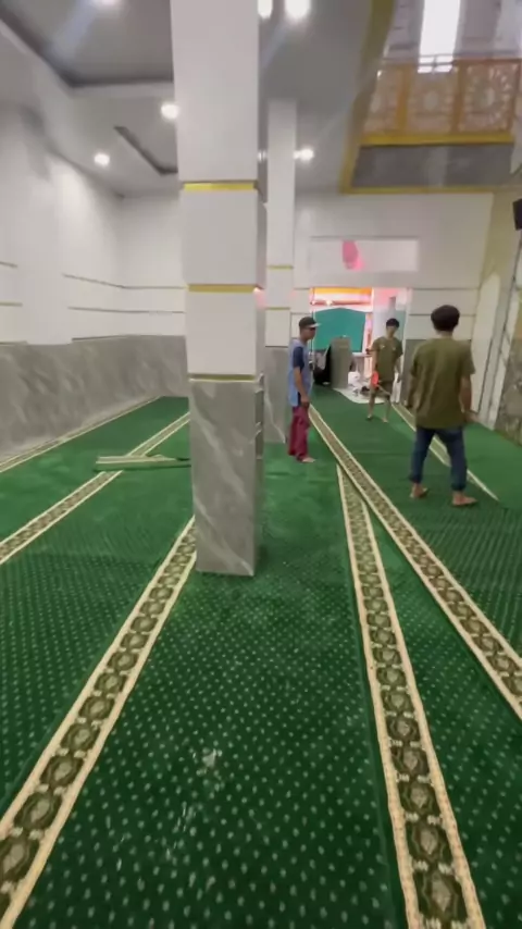 Masya allah ,pemasangan karpet masjid kk agus ,adem bnget dipke sholat ini masjid ,semoga masjid ini sellu full orang ibadah ya allah amin ,jaya sellu ratu glow ku amin
