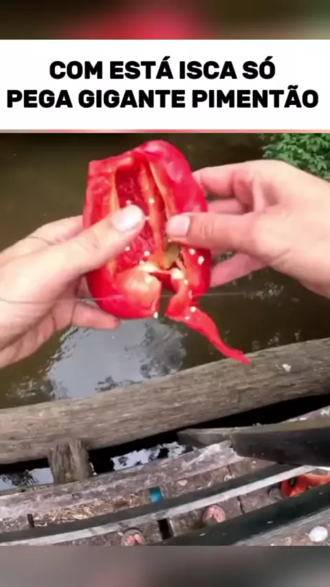 com está isca só pega gigante pimentão #isca #peixe #pimentao #legume #rio
