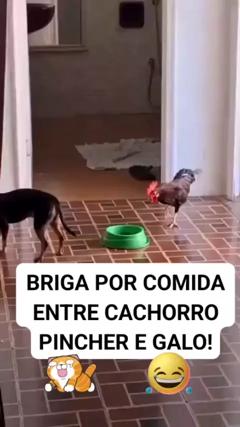 O PAU QUEBROU ENTRE UM CACHORRO PINCHER E UM GALO POR CAUSA DE COMIDA!