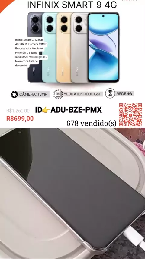 Confira Infinix Smart 9, 128GB 4GB RAM, Câmera 13MP, Processador Mediatek Hélio G81, Bateria 5000MAH, Versão global, Novo com 45% de desconto! #viraliza