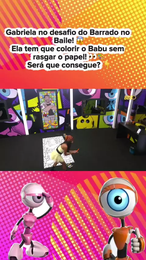 Gabriela no desafio do Barrado no Baile! 😱 Ela tem que colorir o Babu sem rasgar o papel! 👀🎨 Será que consegue? 👇 #celebridade #variedade #realityshow #entretenimento
