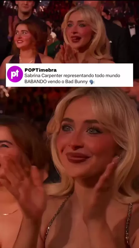 A Sabrina Carpenter BABANDO ao ver o Bad Bunny falando em espanhol no Grammy #entretenimento #fy
