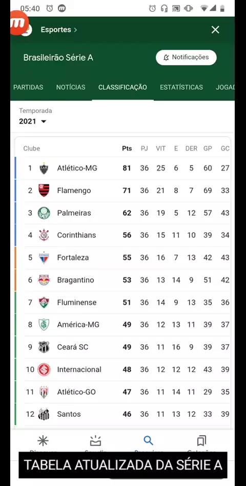 Tabela ATUALIZADA da 36 Rodada do Brasileirão Série A 2021: O que você achou? COMENTE aqui em qual POSIÇÃO o seu TIME do CORAÇÃO FICOU? #Brasileirão #Futebol #tabela #esporte #classificação