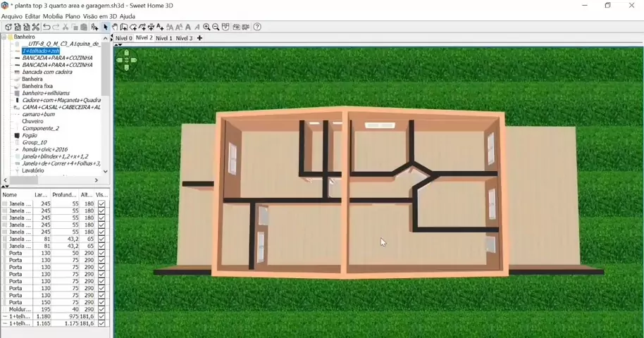 PLANTA PARA TERRENO 6X30 OU MEIO LOTE CASA DE 3 QUARTOS COM 2 BANHEIROS GARAGEM SALA E COZINHA AMPLA. #CONSTRUÇÃO