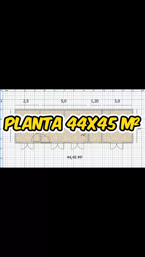 PROJETO BARRACÃO 12X7 X 3,5. 02 QUARTOS , BANHEIRO SOCIAL, SALA COM COZINHA AMERICANA, M² 44,45, TODAS AS MEDIDAS NO PROJETO