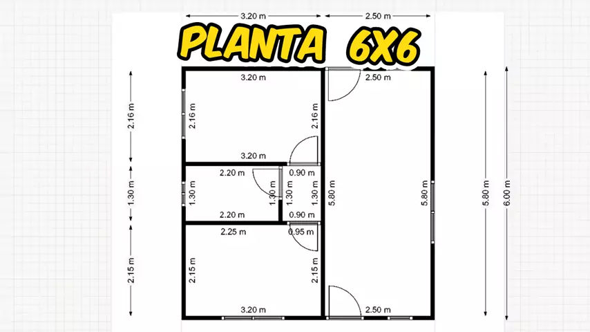 PLANTA CASA 6X6 36 METRO QUADRADO 2 QUARTO , BANHEIRO SOCIAL, SALA E COZINHA AMERICANA.