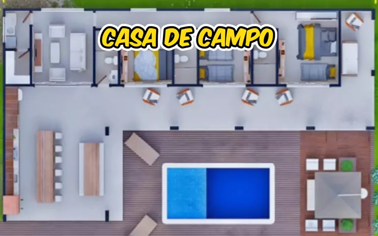 CASA DE CAMPO 12 X 21 3 QUARTOS, 3 BANHEIROS, ÁREA DE LAZER , SALA, AREA NA LATERAL , LAVADEIRIA, PISCINA, PLAY GROUND.