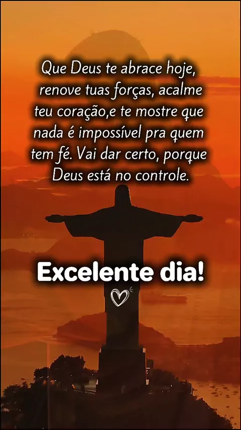 Que Deus te abrace hoje, renove tuas forças, acalme teu coração,e te mostre que nada é impossível pra quem tem fé. Vai dar certo, porque Deus está no controle. ✝️💟🛐 #Palavrasdeanimo✝️💟🛐