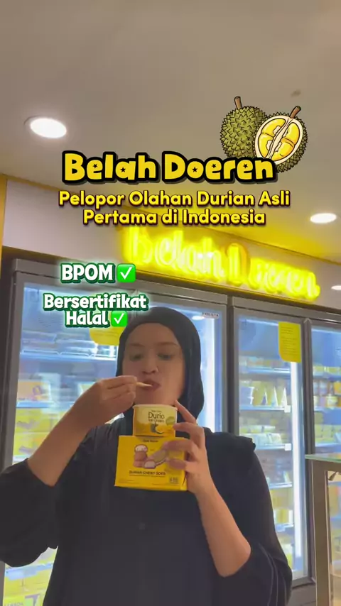 Pecinta durian wajib cobain‼️ Belah Doeren — pelopor olahan durian asli pertama di Indonesia 🇮🇩 ✔️ Pakai durian asli ✔️ Tanpa pengawet & pemanis buatan ✔️ Diproses higienis, standar mutu tinggi ✔️ BPOM & Halal Rasanya autentik, legit, dan duriannya berasa banget 🤤 🔥 Lagi ada promo diskon hingga 20% Cobain best seller: 🍨 Es krim durian + chewy soes mini 💸 Cuma 40RB-an (pakai voucher ) 👉 Langsung klaim vouchernya di tag lokasi video ini sebelum promonya habis 👀✨#edisimakanfeb...