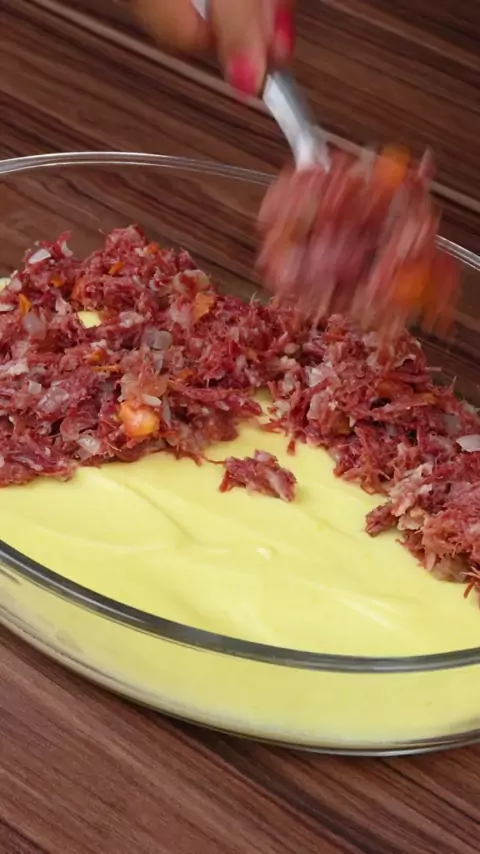 Escondidinho de Carne seca Cremoso๐Ÿ˜‹๐Ÿ˜ curta , comente e compartilhe se vc gostou ๐Ÿ˜ #ValeuMรฃeKwai #viraliza #escondidinho #familiacrescimento #fy