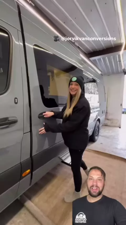 Full tour of a Mercedes-Benz Sprinter custom camper van was sleeping for up to four people a full bathroom and shower queen size bed back and a center galley kitchen. Check out @Jorvikvanconversions for more cool camper van build outs.#campervan#vanlife#camping