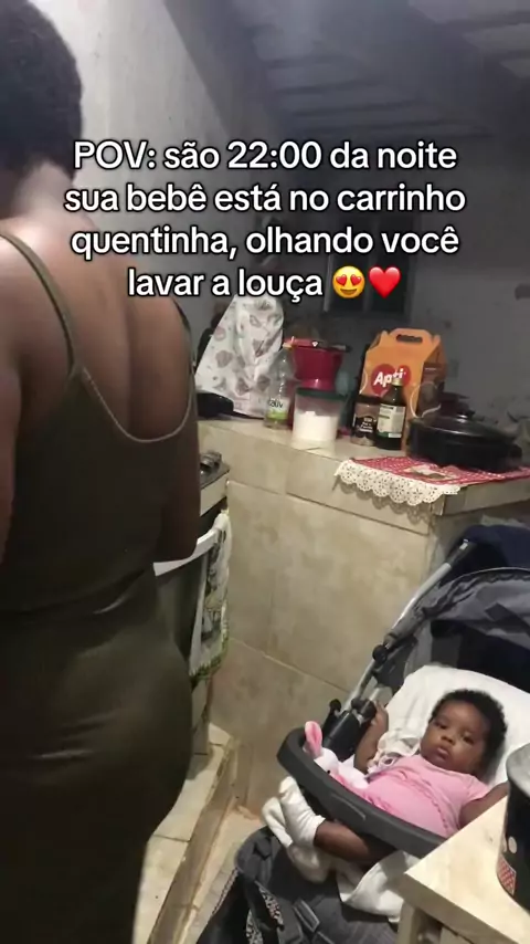 POV: São 22:00 da noite sua bebê está no carrinho quetinha, olhando você lavar louça 😍👩‍👧❤️