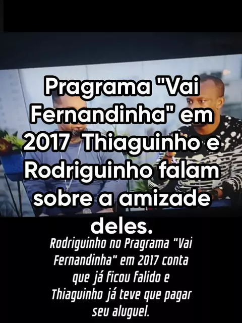 Thiaguinho e Rodriguinho em 2017 no Pragrama "Vai Fernandinha falam sobre a amizade deles e Rodriguinho conta que ficou falido e Thiaguinho o ajudou a pagar o aluguel. #sejacriador #maisgolds #foryou #videolongo