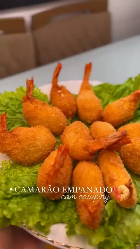 Camarão empanado com catupiry 🍤 Crocante por fora, super recheado e macio por dentro! ✅ INGREDIENTES: - 400g de camarão - 150g de catupiry - 1 xícara de farinha panko (ou farinha de rosca) - 2 ovos - Sal e pimenta do reino a gosto ✅ PREPARO: Tempere os camarões com sal e pimenta do reino, passe o catupiry e leve para o freezer por, pelo menos, 45min. Passe nos ovos batidos, a farinha panko e repita. Frite em óleo quente, escorra e sirva.