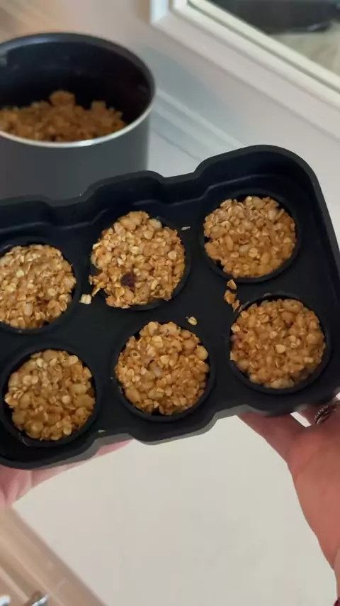 día 21 de 24 ⋆。°✩✨barritas de granola sin horno✨✩°。⋆ ✶ en un bol mezclar: ✶ 2 tazas de avena ✶ 1 taza crema cacahuete ✶ 1/3 taza sirope arce ✶ 1 puñado chips chocolate ✶ apretar bien en un molde amplio (con papel horno debajo) ✶ poner pepitas chocolate por encima ✶ llevar al congelador 10-15min ✶ partir en barritas ✶ se puede dejar en la nevera 2 semanas (congelador 3 meses!!) ✶ menos de 15min