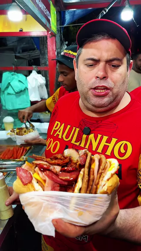 🔥 O famoso hambúrguer 5 carnes com a maionese temperada da casa que só o @paulinhosemmiseria tem! 😋🍔 Quem aí encara essa bomba de sabor? 💥 #PaulinhoSemMiseria #HamburguerGigante #Comida