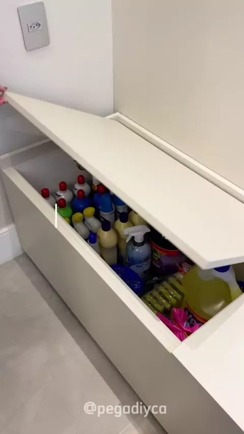 Organização de produtos de limpeza no banco baú 🤩
