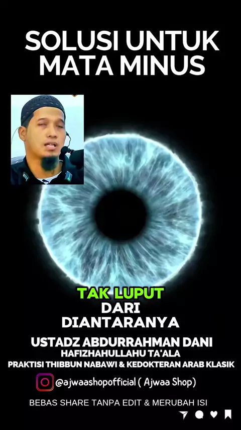 Solusi untuk Mata Minus menurut Thibb Nabawi, Nabi menganjurkan memakai celak mata untuk menjernihkan pandangan. Semoga bermanfaat, Baarakallahu Fiikum. . #mata #sakitmata #mataminus