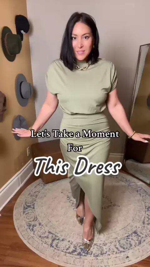 Dolman drama e elegância oliva neste deslumbrante split-hem maxi vestido! ✨ lisonjeiro ajuste, uma pitada de estiramento, e gorgeousness pura. Vamos matar o jogo de estilo! # MaxiDressMagic # OliveElegance # FashionFaves # DiscoverYourStyle # lisonjeirovestidos # datenightdress # shortyover40