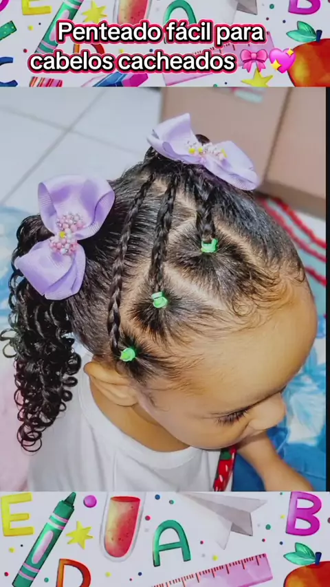 Penteado fácil para cabelos cacheados 🎀 #penteadoinfantil #Tranças #penteados #viral