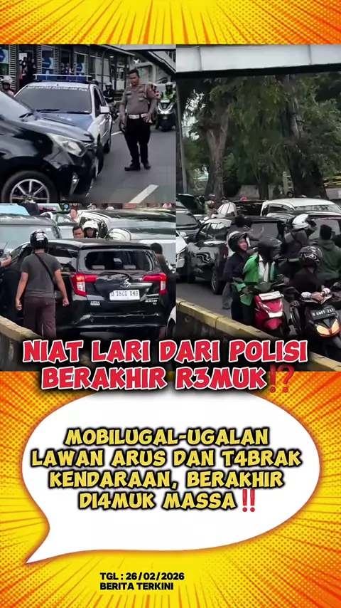 niat lari dari polisi berujung r3muk⁉️ #pengemudi #mobil #REMUK #massa #Polisi