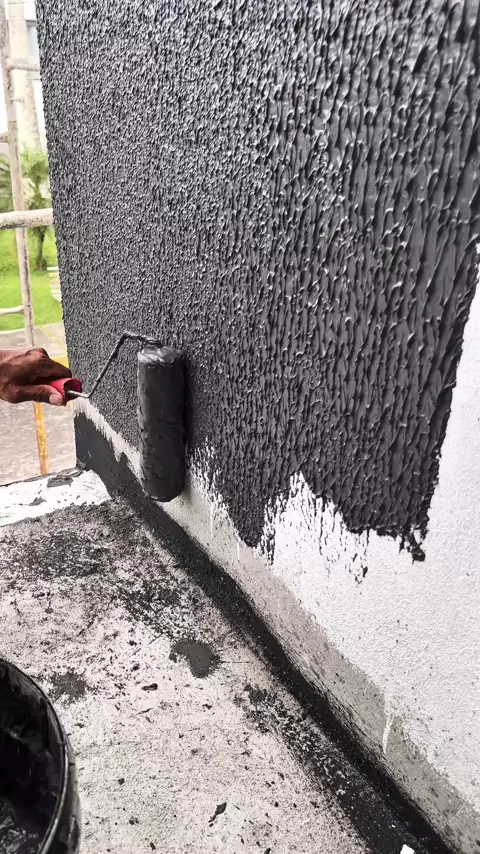 Bastidores de uma aplicação de textura lisa na cor cinza escuro
