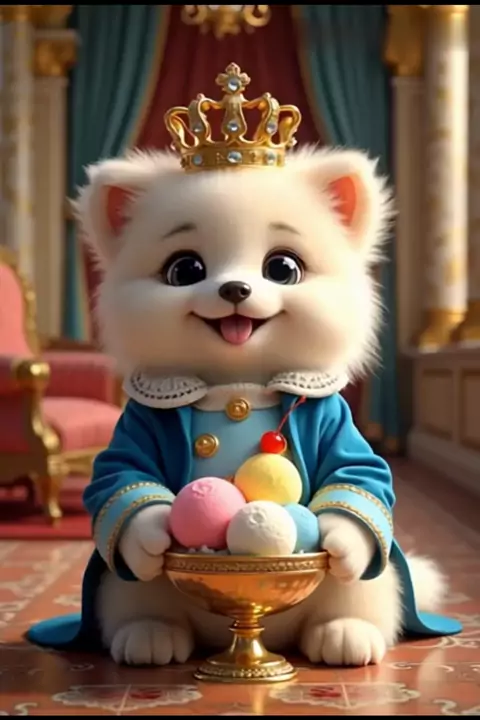 Cute and funny king dog eating a delicious happines sundae 🥹🤍. #dog #pet #cute #funny #kwai
