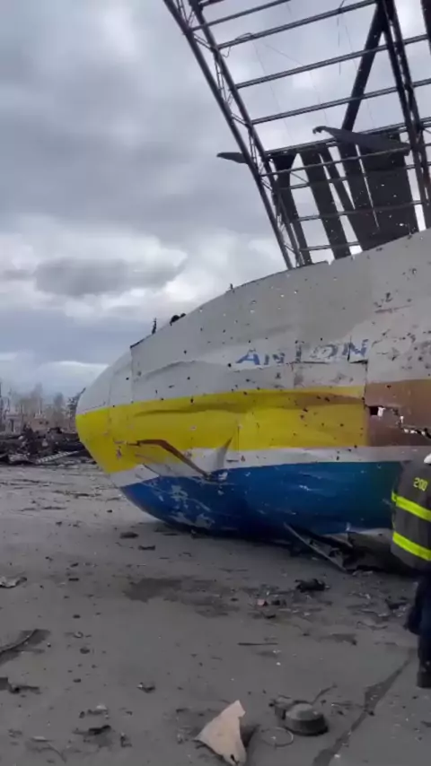 TRISTE IMAGEM, VER O MAIOR AVIÃO DO MUNDO, ANTONOV AN- 225 MRIYA, TODO DESTRUIDO.