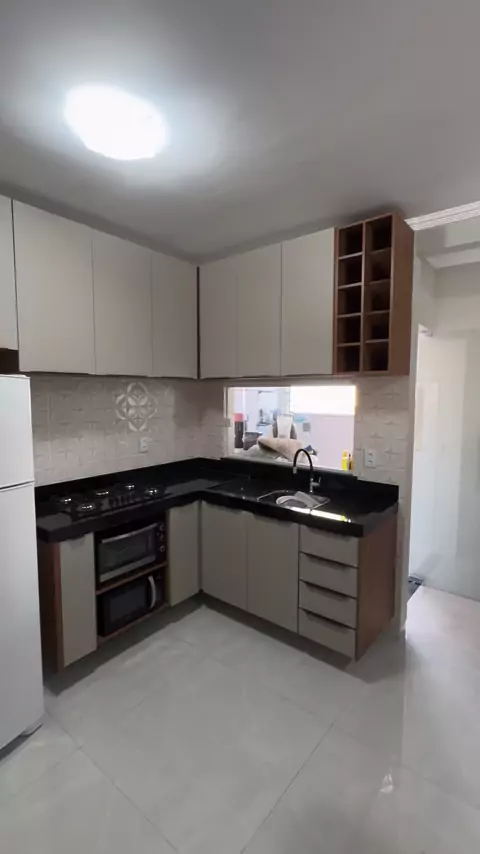 Cozinha entregue nas cores Viena com madeirado, com puxador facetado, drobadiça com amortecedor e corrediça telescópica. Cozinha com local para forno, microondas, geladeira e sugar. 🫶🏻🙌🏻 #cozinha #mdf #marcenaria #gratidão