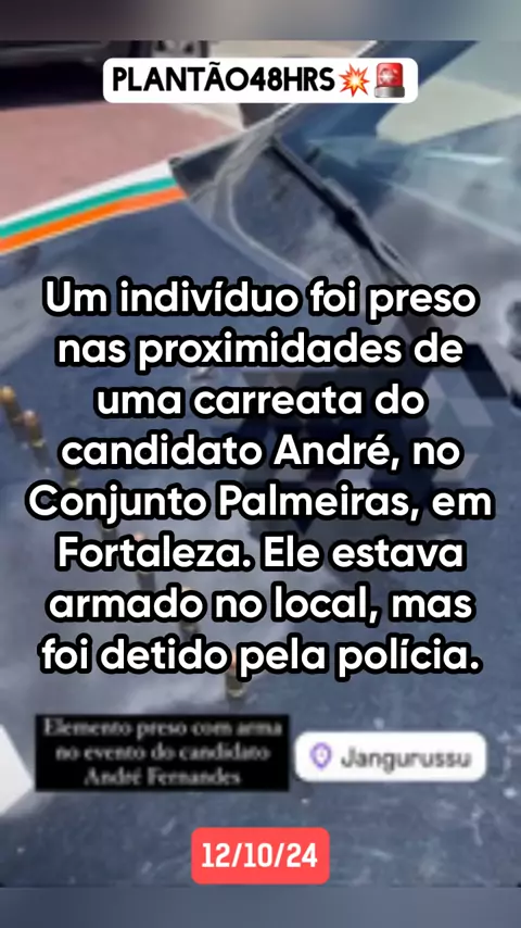Um indivíduo foi preso nas proximidades de uma carreata do candidato André, no Conjunto Palmeiras, em Fortaleza. Ele estava armado no local, mas foi detido pela polícia. #flagrante #últimasnotícias #noticiasdeultimahora #noticia #Prisão