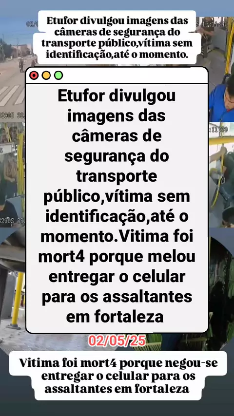 Etufor divulgou imagens das câmeras de segurança do transporte público,vítima sem identificação,até o momento.Vitima foi mort4 porque negou-se entregar o celular para os assaltantes em fortaleza #flagrante #femicidio #notícia #noticiasdeultimahora #últimasnotícias