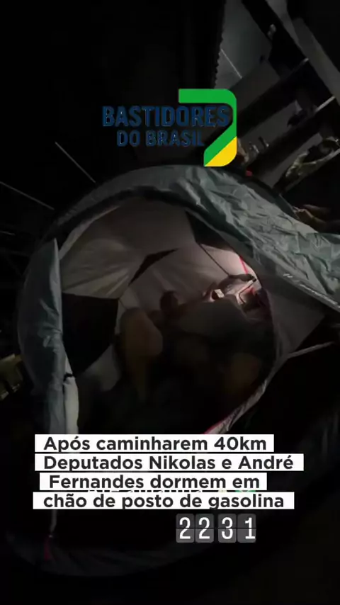 Após longo dia de caminhada, os deputados federais Nikolas Ferreira e André Fernandes dormem acampados em um chão de posto de gasolina em Minas Gerais. Nas redes sociais, Nikolas afirmou que deve seguir o trajeto para Brasília a partir das 8:00h da manhã de terça-feira. #plantaodenoticiasjf