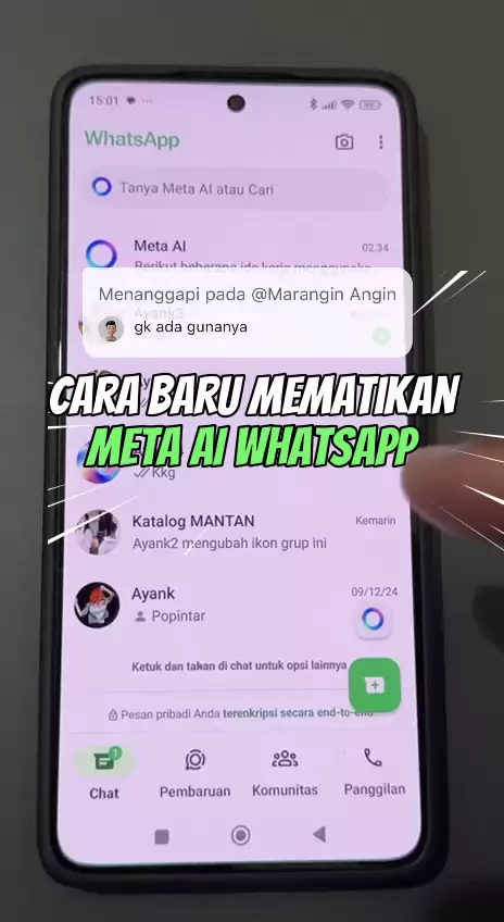 Menanggapi pada @Marangin Angin(O150001564971305) Cara Terbaru Hilangkan Fitur Meta AI Whatsapp #HilangkanMetaAIwhatsapp #MetaAidiWhatsapp #trikwa #trikwhatsapp #TipsTrik