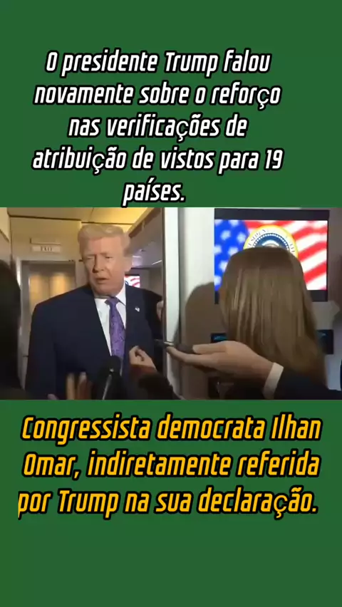 O presidente Trump falou novamente sobre o reforço nas verificações de atribuição de vistos para 19 países, destacando o caso da Somália, um dos países mais caóticos e perigosos do mundo. A congressista democrata Ilhan Omar, indiretamente referida por Trump na sua declaração, é natural da Somália e é uma grande adversária política do presidente. #ultimasnoticias #noticias
