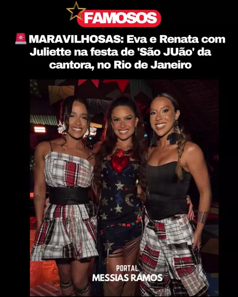 🚨 MARAVILHOSAS: Eva e Renata com Juliette na festa de 'São JUão' da cantora, no Rio de Janeiro. 📲Siga: @portalmessiasramos 📷Foto: Reprodução #noticias #famosos #Renata #eva #juliette