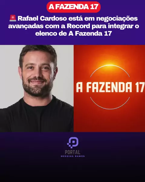 🚨Rafael Cardoso está em negociações avançadas com a Record para integrar o elenco de' A Fazenda 17'. 📲Siga: @portalmessiasramos Fonte: Fábia Oliveira #afazenda17 #afazenda #realityshow #rafaelcardoso #noticias