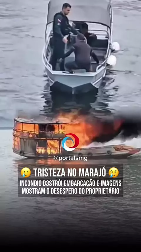 ⚠️ URGENTE Imagens que circulam nas redes sociais mostram o desesp3ro do proprietário da embarcação que foi destru!da por um inc3dio na manhã desta terça-feira (23), na Baía do Marajó, entre os municípios de Portel e Melgaço, na Ilha do Marajó. Nos vídeos enviados ao @portalsmg, o dono do barco aparece a bordo de uma lancha da Polícia Militar, acompanhando de perto o momento em que o føgo consome completamente a embarcação que representava seu principal meio de trabalho e sustento.