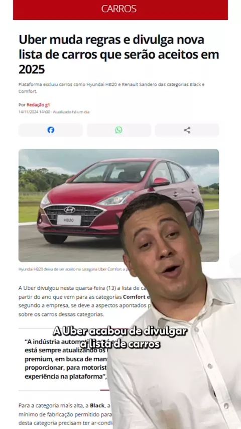 Uber muda regras e divulga nova lista de carros que serão aceitos em 2025 #g1 #kwainoticias