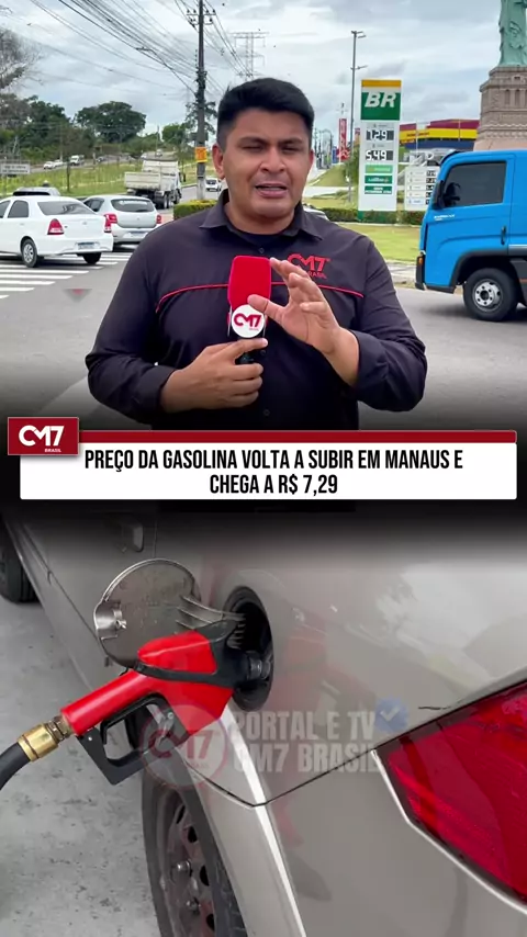 O preço da gasolina voltou a subir em postos de combustíveis de Manaus neste fim de semana. Em alguns locais, o litro da gasolina comum passou de R$ 6,99 para R$ 7,29 em apenas um dia, enquanto a aditivada chegou a R$ 7,49. A capital amazonense também aparece entre as cidades com combustíveis mais caros do país, cenário que especialistas associam a custos logísticos, impostos e à estrutura de abastecimento da região Norte. 𝗦𝗶𝗴𝗮: @portalcm7 || 𝗔𝗰𝗲𝘀𝘀𝗲 𝗰𝗺𝟳𝗯𝗿𝗮𝘀𝗶𝗹.𝗰𝗼𝗺 𝗽𝗮𝗿